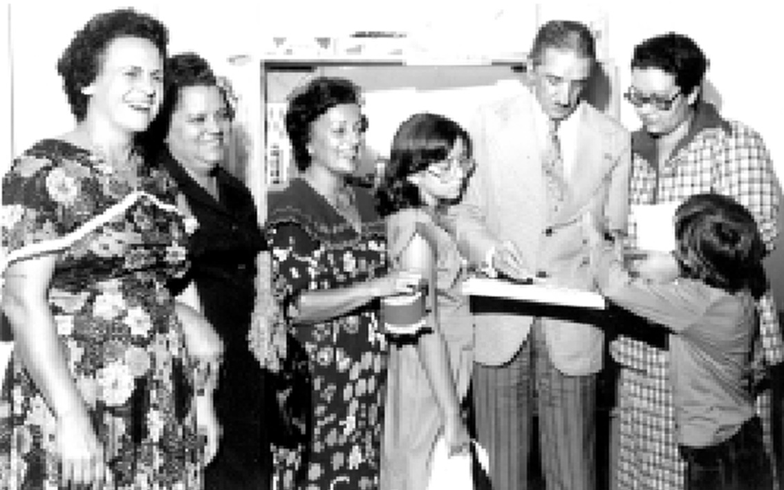 A fotografia acima é de 1974, durante um evento festivo realizado na Apae de João Monlevade. Aparecem, entre outras pessoas, o prefeito Lúcio Flávio de Souza Mesquita, a primeira dama, Dona Vânia, dois filhos do casal; e a presidente da instituição na época, Dona Xoxô. Um grande trabalho foi realizado na Apae naquela época, quando eram iniciadas as atividades. Bons tempos!