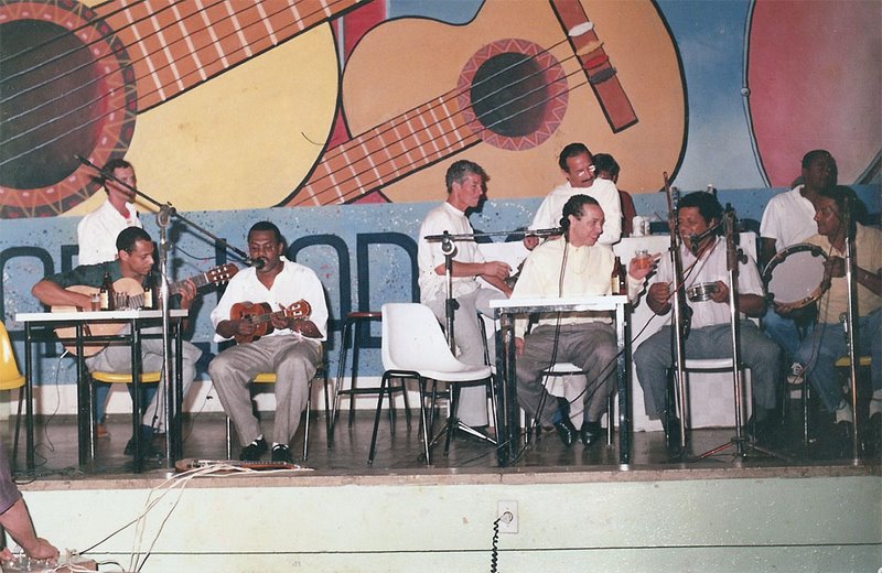 Nesta foto abaixo, “Luís do Cavaco” – o segundo da esquerda para a direita, ao lado de José Ricardo -, junto ao Grupo “Afilhados do Sereno”, defendendo uma música durante um Festival da Canção realizado no ginásio do Grêmio, nos anos 1980