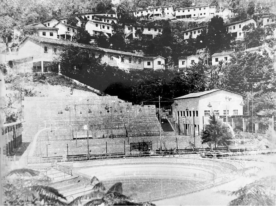 A fotografia que se vê acima foi feita ainda na década de 1950, por volta de 1955, quando o Grêmio já atuava como um clube promovendo a ação social através dos esportes especializados, entre o futebol de salão, basquete e vôlei, envolvendo homens e mulheres, e crianças, adolescentes e jovens. Pode-se ver que a piscina ainda estava em construção e ainda não havia o ginásio coberto. Ao lado da quadra de esportes havia um salão onde eram realizadas horas-dançantes e também contava com uma pequena sala de cinema, além do bar. Acima, as casas da Cidade Alta, aparecendo em primeiro plano o famoso e saudoso Colégio de Tábua, por onde estudaram várias gerações, antes da construção do Ginásio Monlevade na praça Ayres Quaresma, saudosa Praça do Cinema. Esta era nossa cidade antiga, e “Aí deu Sodade”!